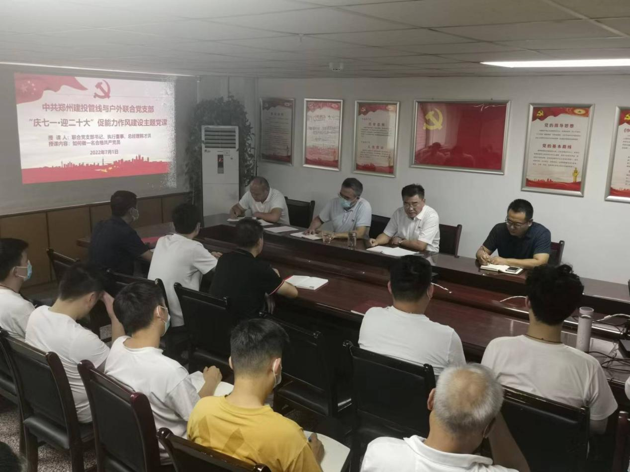 2022年7月1日,中共鄭州建投管線(xiàn)與戶(hù)外聯(lián)合黨支部組織全體黨員和管線(xiàn)公司全體干部職工,在一首《沒(méi)有共產(chǎn)黨就沒(méi)有新中國(guó)》大合唱中,建投管線(xiàn)與戶(hù)外聯(lián)合黨支部拉開(kāi)慶祝中國(guó)共產(chǎn)黨成立101周年,迎接黨的二十大勝利主題黨日活動(dòng)。