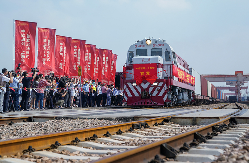 “上海號”中歐班列從上海首發(fā),駛向德國漢堡(9月28日攝)。新華社記者 丁汀 攝