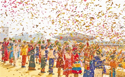社會各界代表及近百家新聞媒體5000余人在現(xiàn)場參加大典。圖片由本報記者馬健徐宗福拍攝。