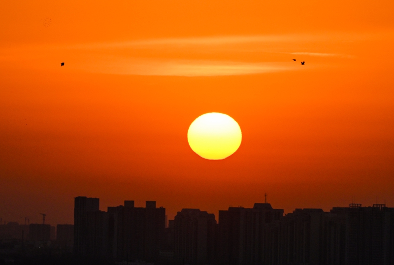 2025年1月1日在北京市區拍攝的日出景象。新華社記者 陳曄華 攝