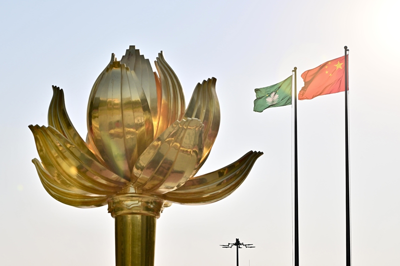 澳門特別行政區政府隆重舉行升旗儀式,慶祝澳門回歸祖國25周年(2024年12月20日攝)。新華社記者 朱煒 攝