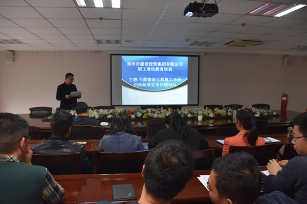 11月30日下午,根據(jù)《鄭州市人民政府國有資產(chǎn)監(jiān)督管理委員會(huì)關(guān)于印發(fā)鄭州市國資系統(tǒng)2018年“12·4”國家憲法日集中法治宣傳活動(dòng)方案的通知》要求,為弘揚(yáng)憲法精神,建設(shè)法治鄭州,集團(tuán)公司在25樓會(huì)議室開展了《建設(shè)工程施工合同糾紛疑難實(shí)務(wù)問題》解讀培訓(xùn)活動(dòng)。本次教育培訓(xùn)活動(dòng)為視頻培訓(xùn),培訓(xùn)課件主講人為袁華之律師,集團(tuán)公司80多名員工參加本次活動(dòng)。