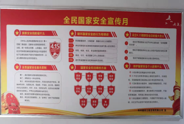 會前支部在公司公共區(qū)域設(shè)置國家安全相關(guān)展板,結(jié)合投影顯示等方式開展普及宣傳,渲染氛圍,提升國家安全宣傳教育的影響力和傳播力。會上集中學習了習近平總書記關(guān)于國家安全的重要論述、《中華人民共和國國家安全法》、《總體國家安全觀學習綱要》重要章節(jié),集中觀看了紀錄片《從全民教育看國家安全》,最后進行了國家安全知識測試。通過多種形式結(jié)合的系列活動,引導廣大黨員群眾增強國家安全意識,堅定不移地貫徹總體國家安全觀。